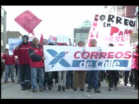 Los trabajadores de Correos de Chile cumplen su segundo día en huelga, cerca de 4.600 trabajadores que comprenden a 5 sindicatos agrupados en la Federación de Trabajadores de Correos de Chile (Fetracortel) se encuentran movilizados por mejoras salariales (demandan un aumento 45 mil pesos mensuales en su sueldo y un bono de término de conflicto de un millón y medio de pesos, ademas de la reducción del periodo de negociación colectiva de cuatro a dos años.